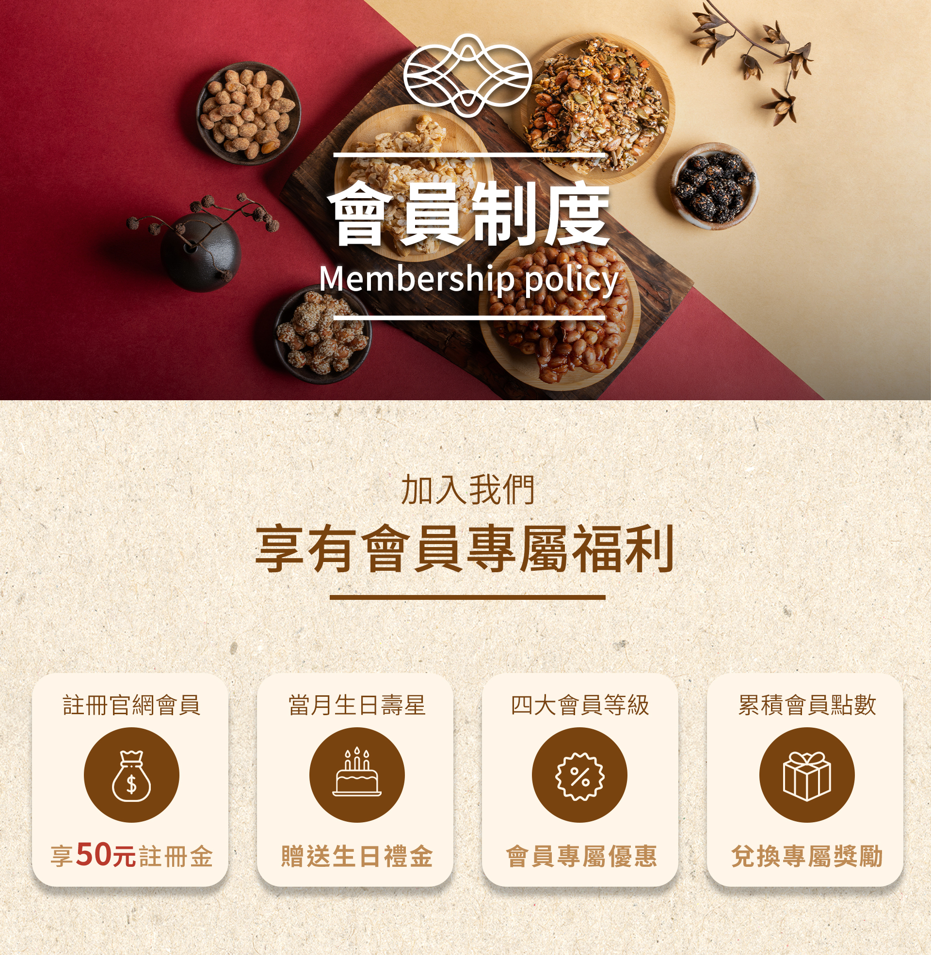 - 註冊大地花生會員即可獲得新會員註冊購物金50元,永久有效。滿額購物金為訂單折扣後金額(折扣包含:全館/指定商品優惠、會員分級優惠、購物金等)在不含運費及附加費情形下之金額。