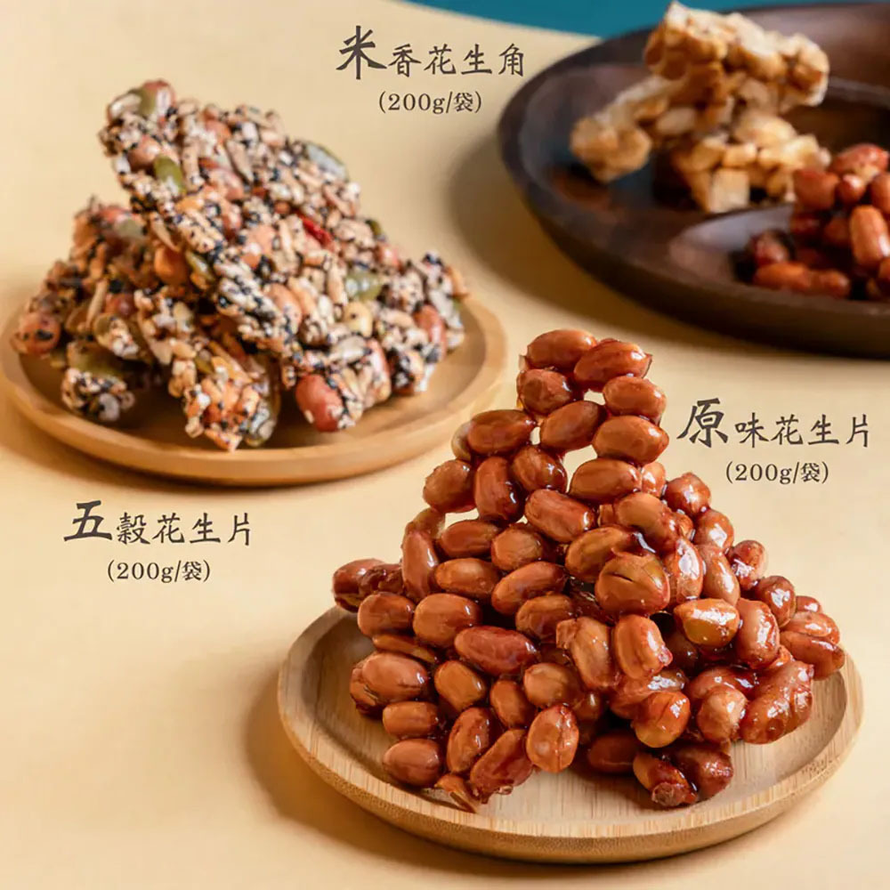 嚴選原味、芝麻、青豆等三款人氣花生糖,口味搭配經典耐吃、層次豐富,不論自享或送禮,都是最受歡迎的黃金組合。