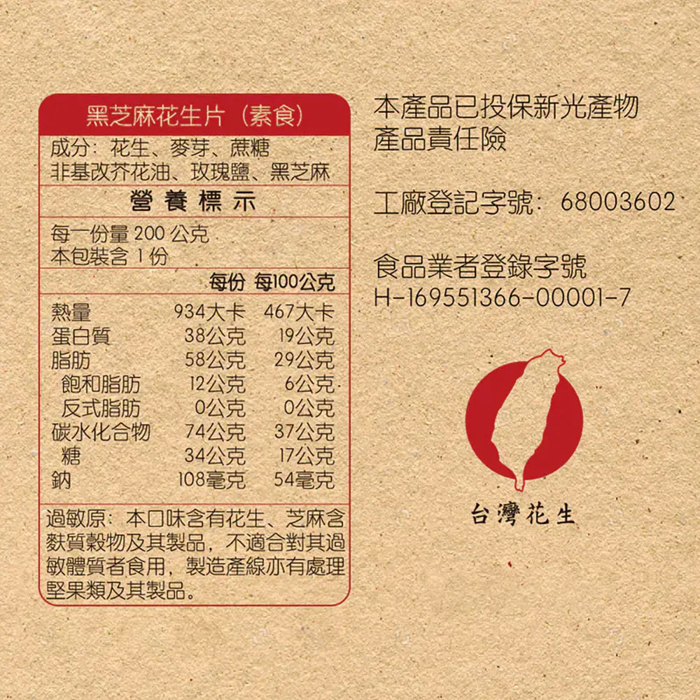 -成分:花生、麥芽、蔗糖、非基改芥花油、玫瑰鹽、黑芝麻