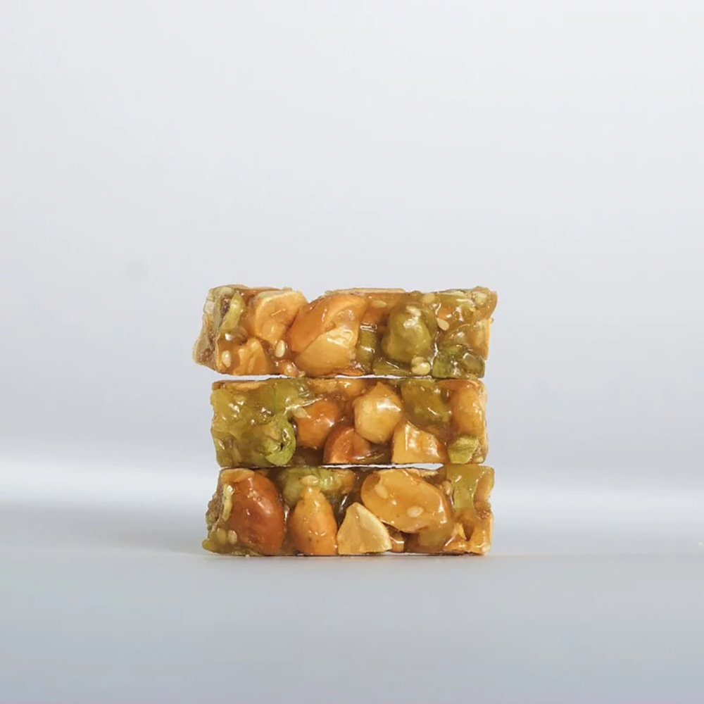 花生與青豆仁一同去皮烘炒,色澤分明、質地飽滿,佐以輕量芝麻提升整體風味,不僅顏色吸睛、香氣撲鼻,也讓口感層次更立體,是適合各年齡層的傳統系創新零嘴。