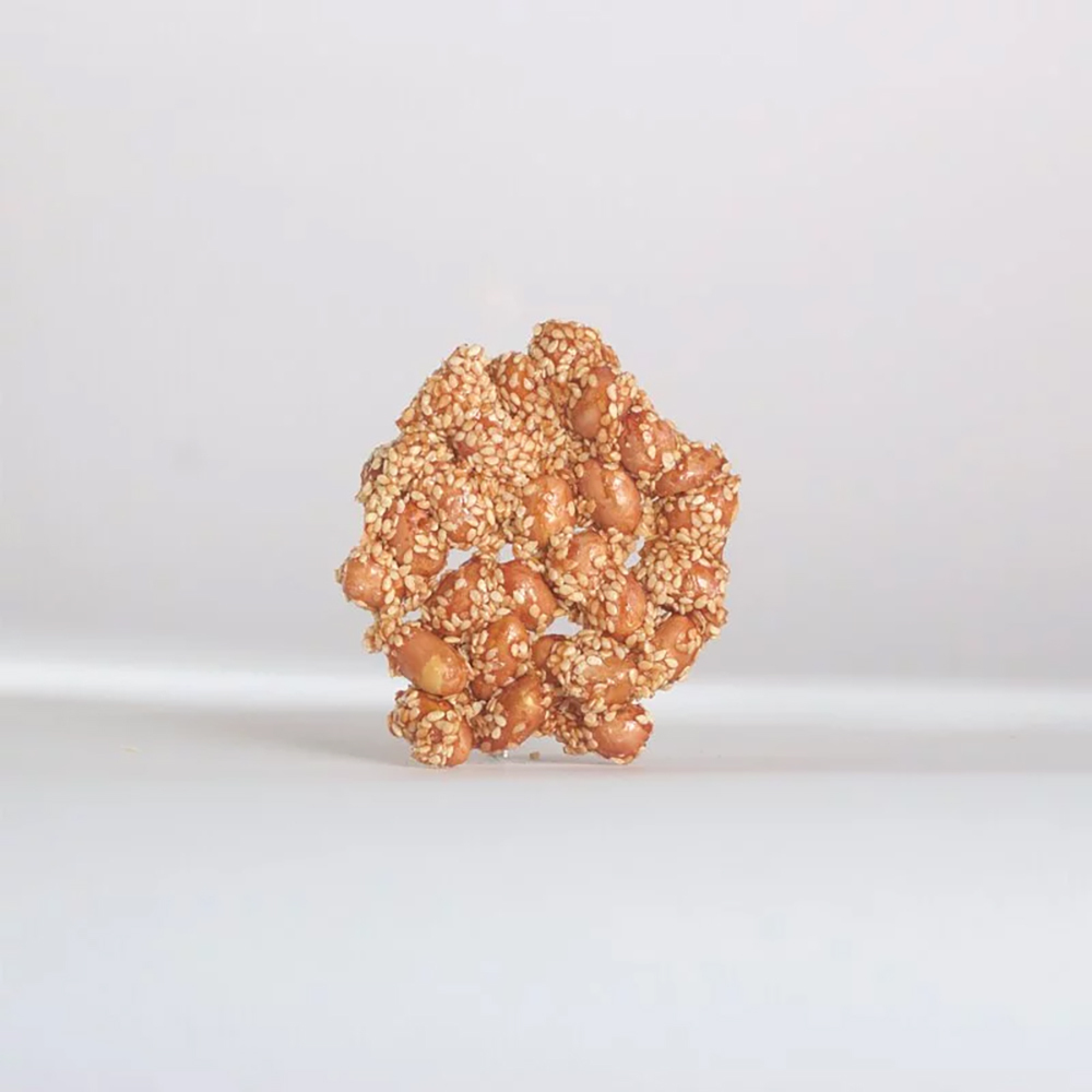 「白芝麻花生片」將嚴選花生與低溫焙炒白芝麻結合,佐以細緻糖衣手工拌炒,打造出香酥卻不膩口的經典組合。
