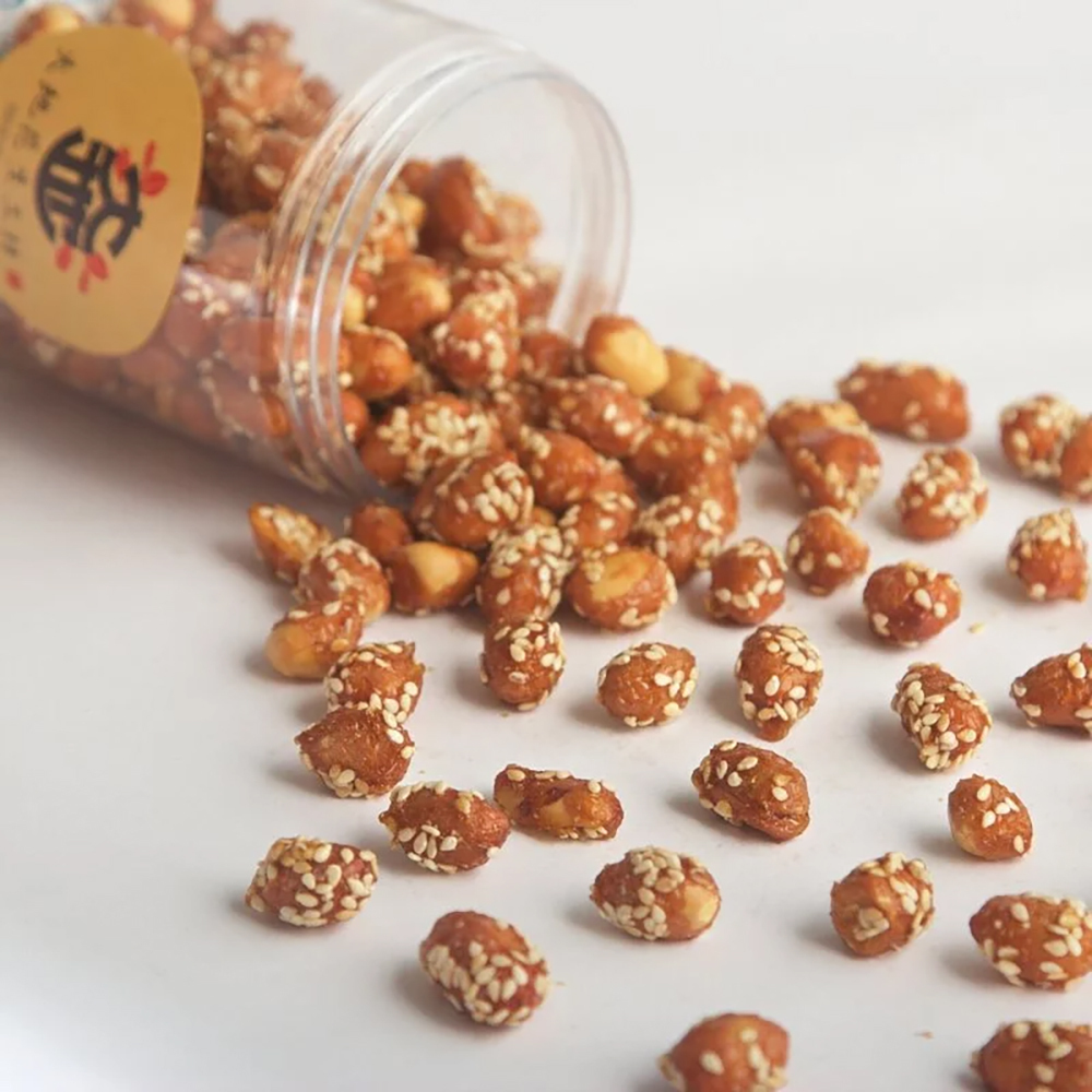 沿用60年糖漿黃金比例,低溫拌炒不油炸,每一批皆由師傅親手掌控火候,確保糖衣薄而均勻,入口酥脆不黏牙,甜度適中,久嚼不膩。
