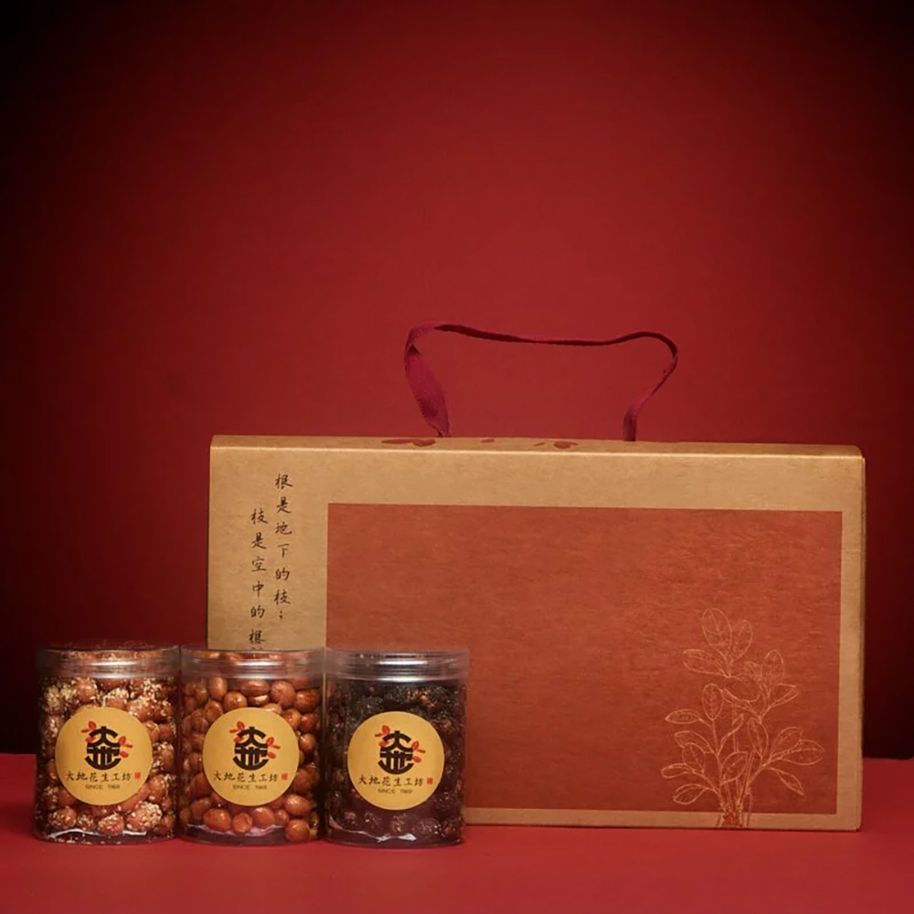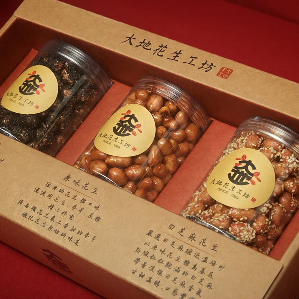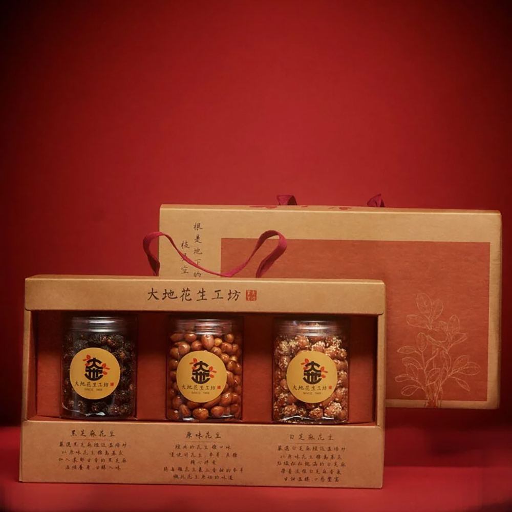 「饕客高規格|經典花生裹禮盒 (200g x 3罐)」不僅是對傳統技藝的延續,更是送禮文化的新演繹。大地花生三兄弟用心守護祖傳糖漿工藝,將誠意與溫度注入每一口花生糖中。
