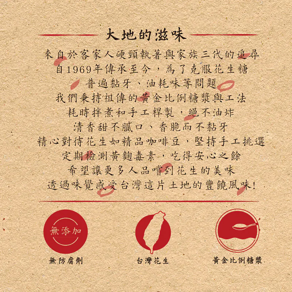 延續1969年創立以來的祖傳手工糖藝,師傅以純麥芽糖漿手工拌炒,每顆堅果都裹上一層薄脆糖衣,保留天然原味,甜而不膩,吃完口齒留香。