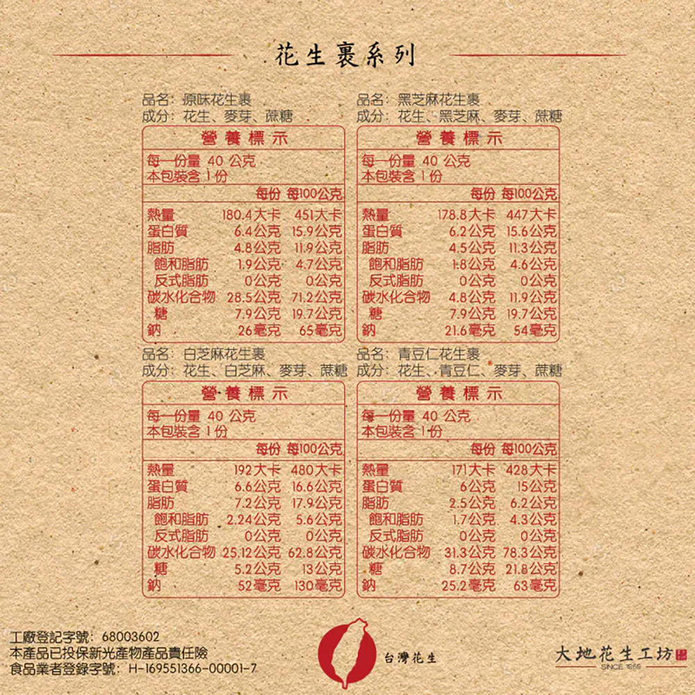 從原料到製程皆不使用人工香料與防腐劑,秉持簡單純粹的初衷,只讓你吃到花生與麥芽的真實風味,天然無負擔,是大人小孩都能安心享用的小零嘴。